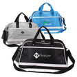 - The handsome duffle bag is complete with a large side mesh pocket, dual carry handles, and a shoulder strap.