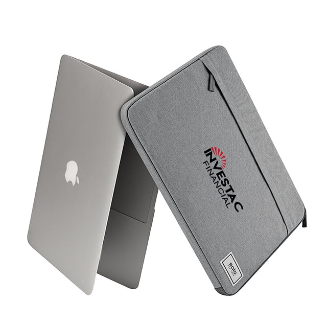 The Solo® Re:focus 13" Sleeve from the Re:cycled Collection is made from a heathered grey material created from 3 recycled PET bottles. Use this padded sleeve with black camo lining to protect your laptop in style. It features full length zippered pockets on both the front and back sides and the main compartment fits most laptops up to 13". It also comes with a 5-year limited warranty.
