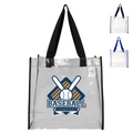Clear Open Tote; This clear bag complies with the new NFL & PGA security bag requirements; Perfect size for any sporting event and outdoor outings. 1" wide x 19" long handles.