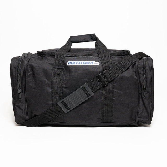 with our ultimate sport duffel Bag. This duffle bag gives you the best of both worlds. With soft grip dual handles, adjustable padded shoulder straps, and 2 large end zipper pockets, you get the convenience and versatility to go with our renowned strength and durability. Straps and zippers match bag color, making this a great team bag!