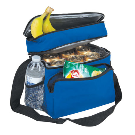 Feature: Zippered insulated compartment holds 6 packs of 12 oz. cans, zippered front pocket, outside cell phone and mesh bottle pockets, adjustable shoulder strap